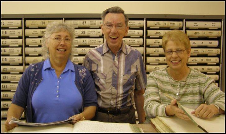 Terry gets a little help at the County Recorder's Office from Dayle and Becky.