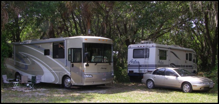 Tucked in our spot at Bill & Sue's next to their motorhome.