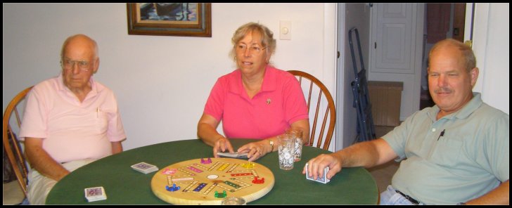 Jim, Terry and Bill getting ready to play Fast Track with spouses.